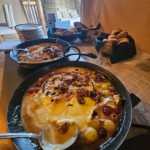 Skillet fired, Breckland Brie cooked over the coals with toasted balsamic walnuts, grapes, Cranberry & fresh herbs.