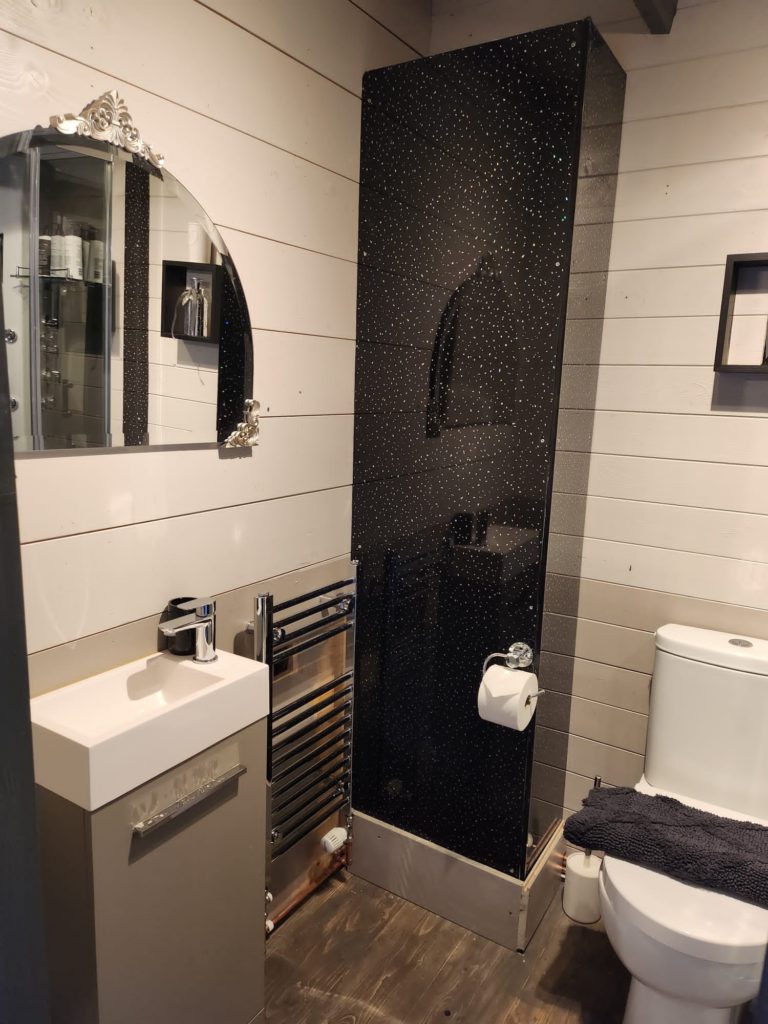 Step into our cabin with fully lockable door and functioning windows, small log burner to keep you warm on the colder nights. We provide a welcome hamper which have some of our tester spa products in. The cabin has an open plan full equipped kitchen, dinning and cosy lounge area with TV . The bathroom is situated in the cabin with running hot water, shower, flushing toilet and sink. We provide toiletries, toilet roll, mirror and a hairdryer.
