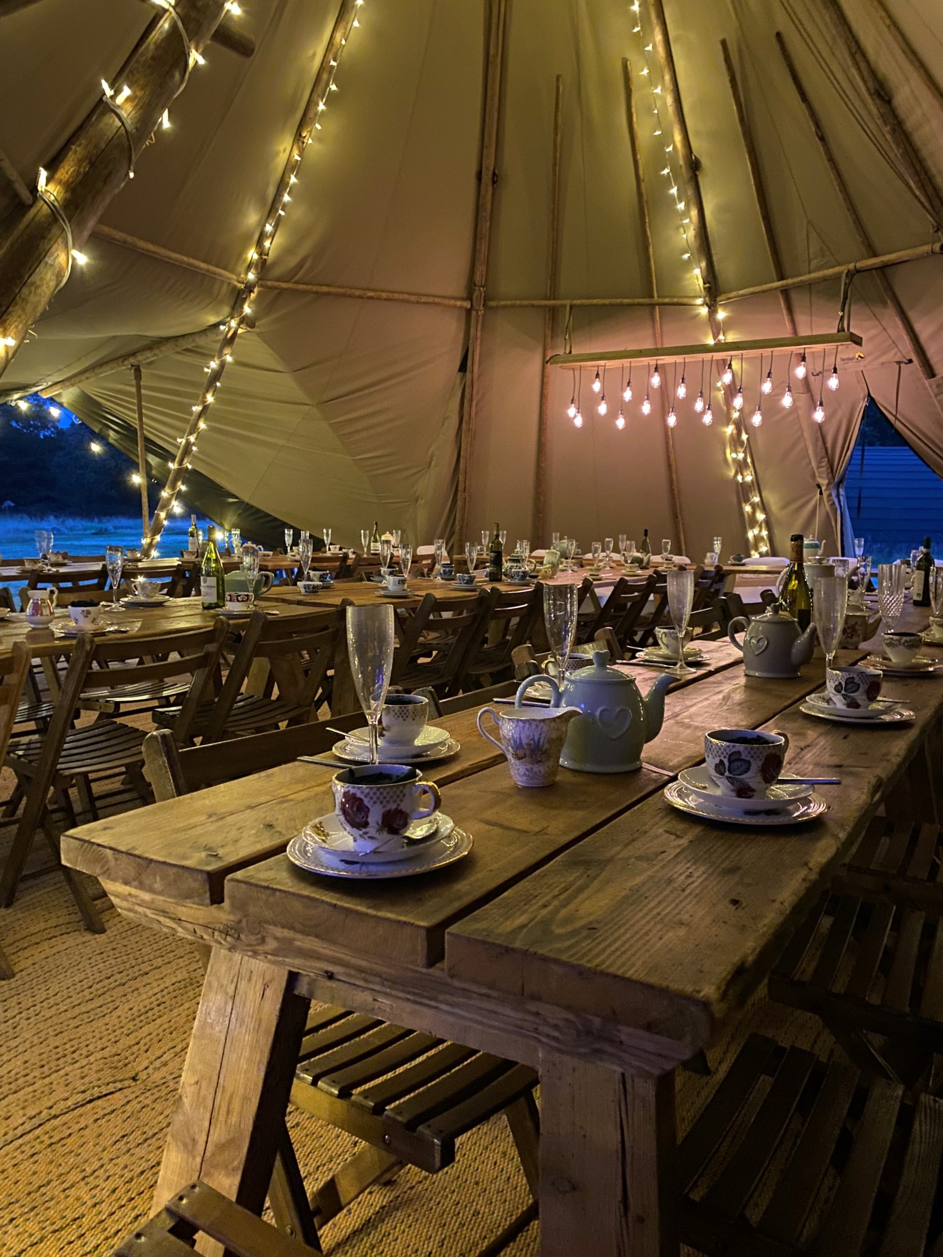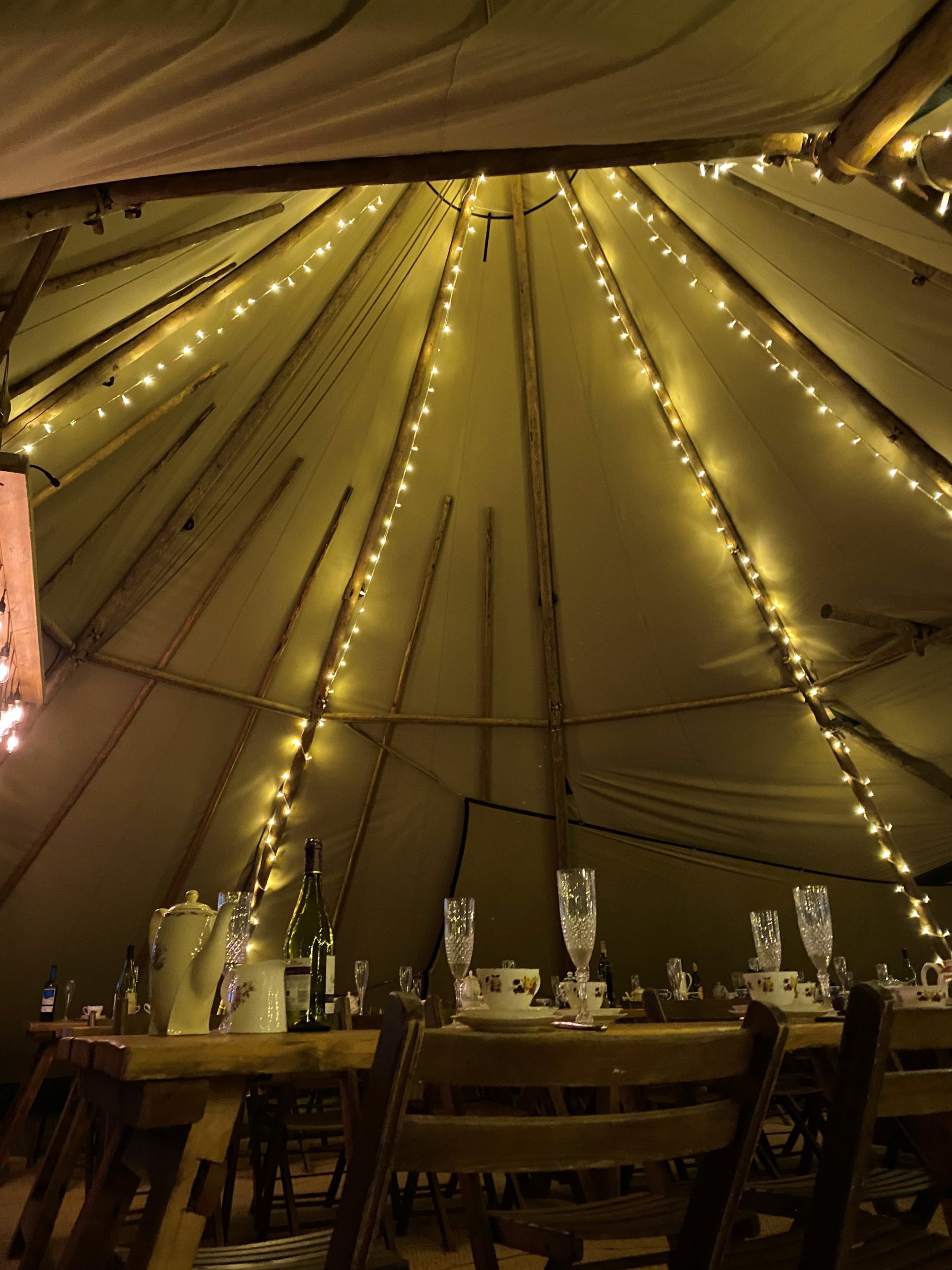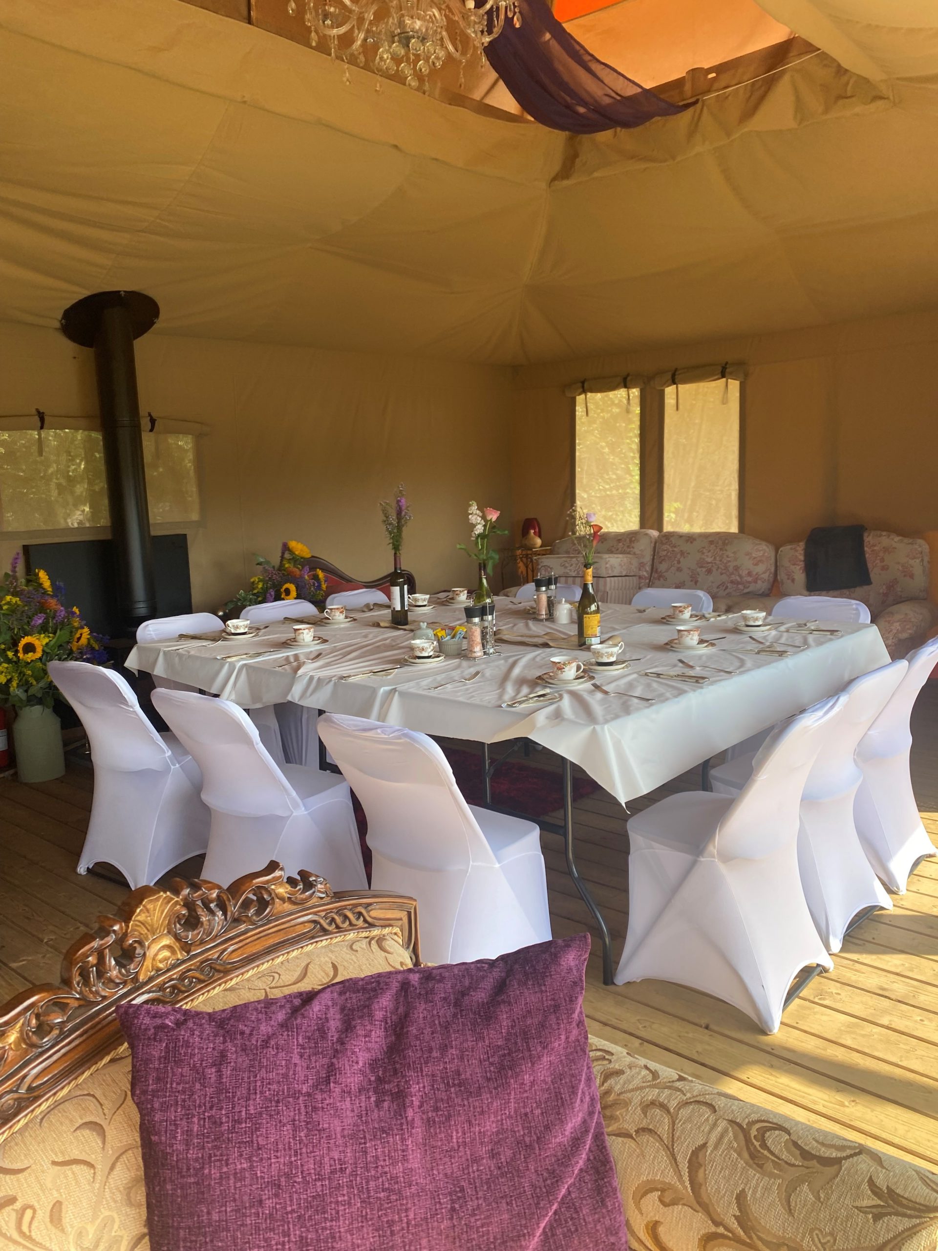 The Giraffe enclosure – sleeps 6 people, caters for up to 20 guests for an extremely private ceremony, balcony wedding in the woods with a large fire pit, wood burner and gazebo.