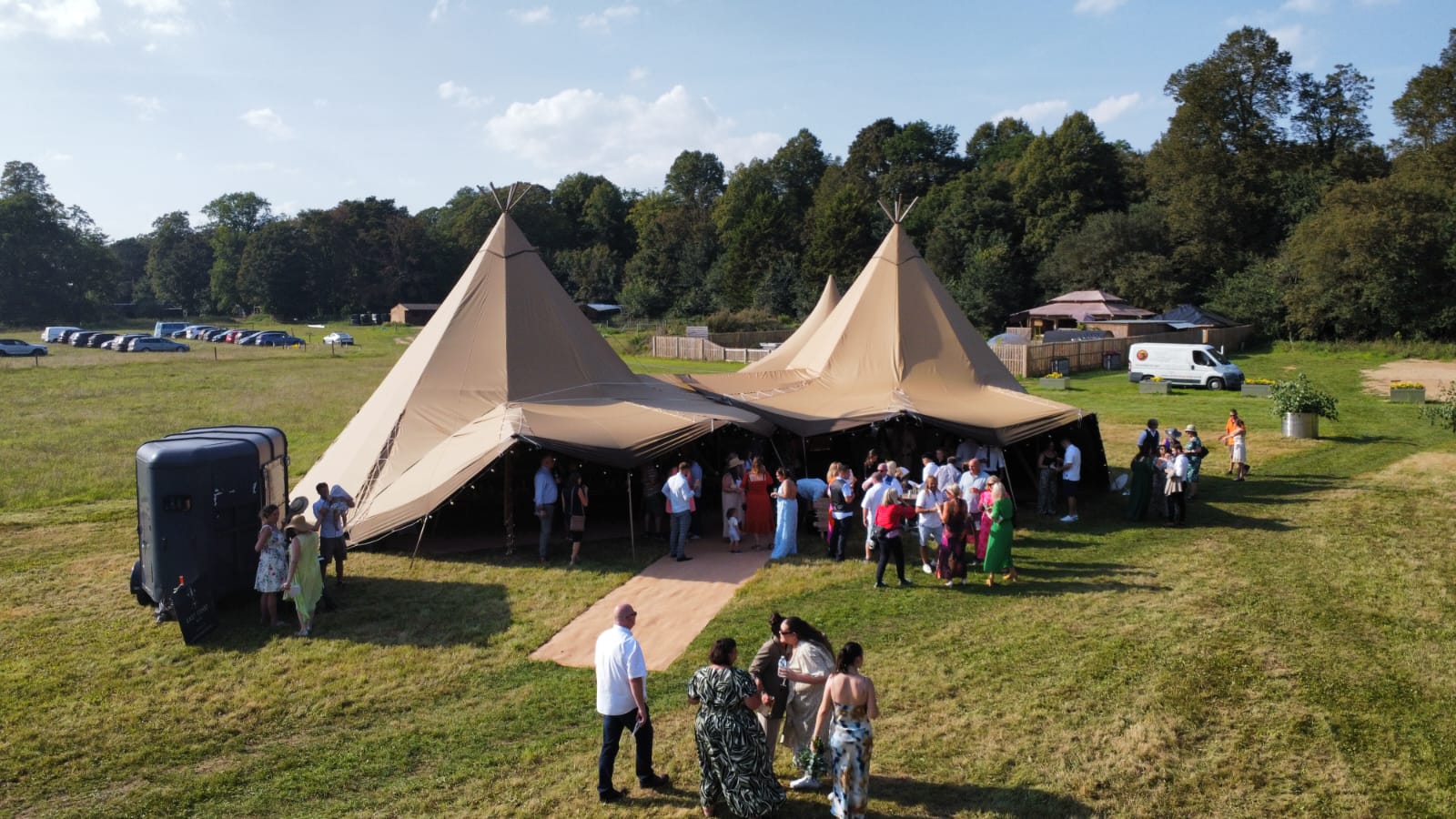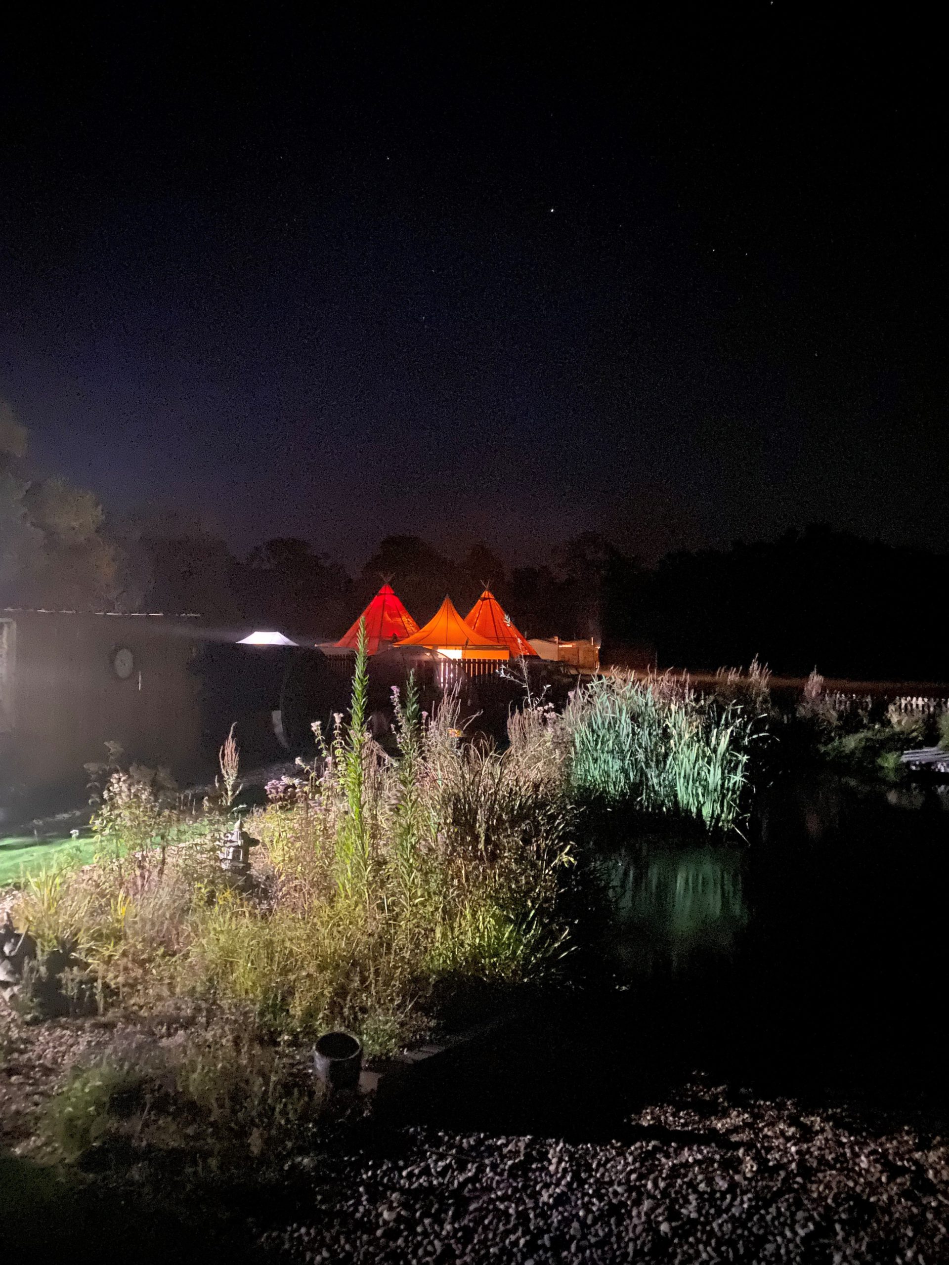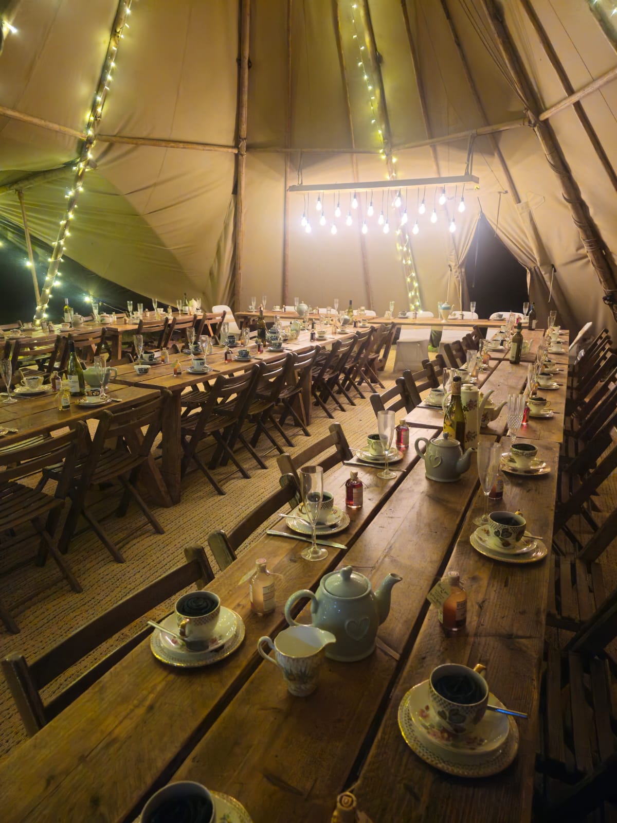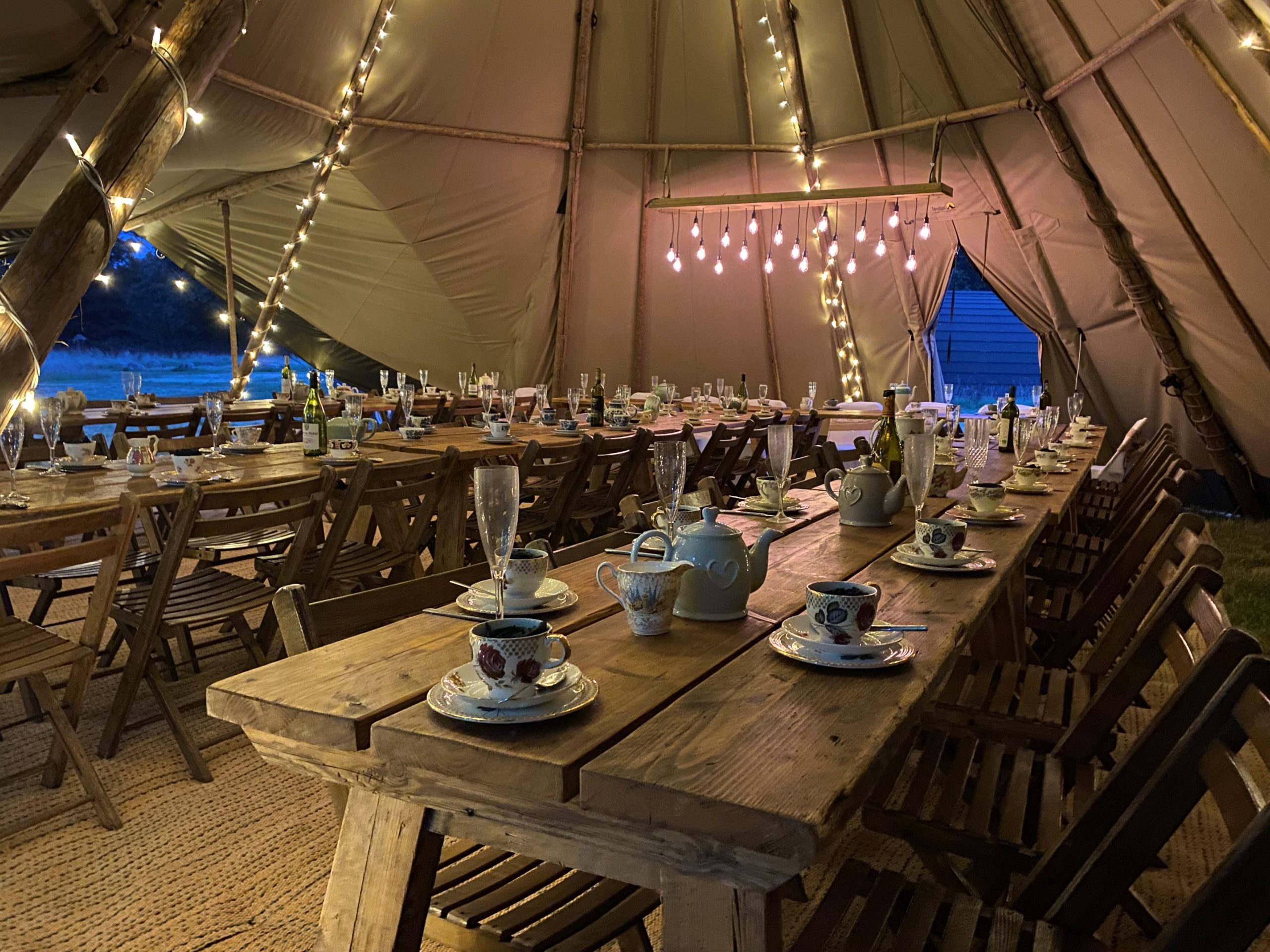 The Giraffe enclosure – sleeps 6 people, caters for up to 20 guests for an extremely private ceremony, balcony wedding in the woods with a large fire pit, wood burner and gazebo.