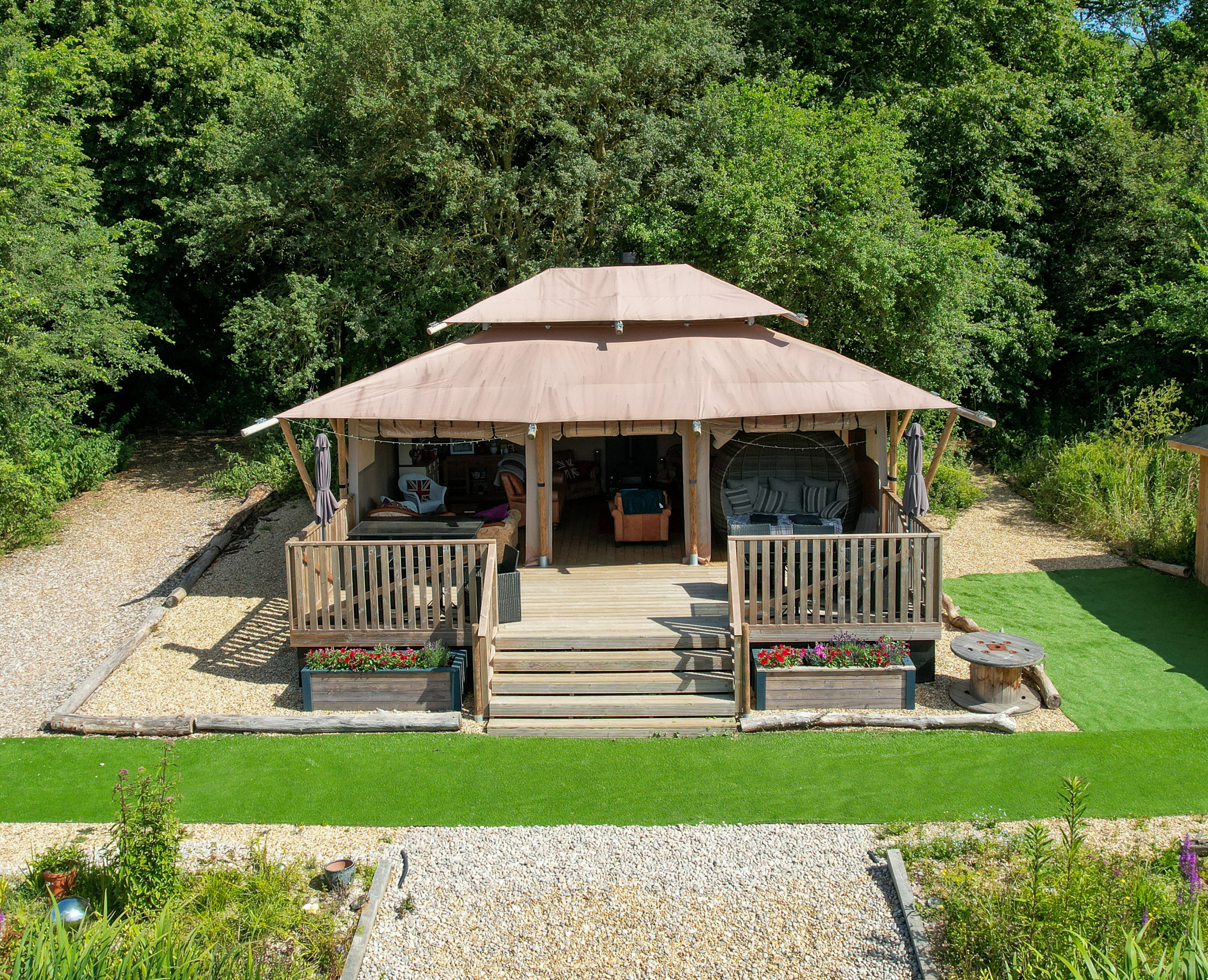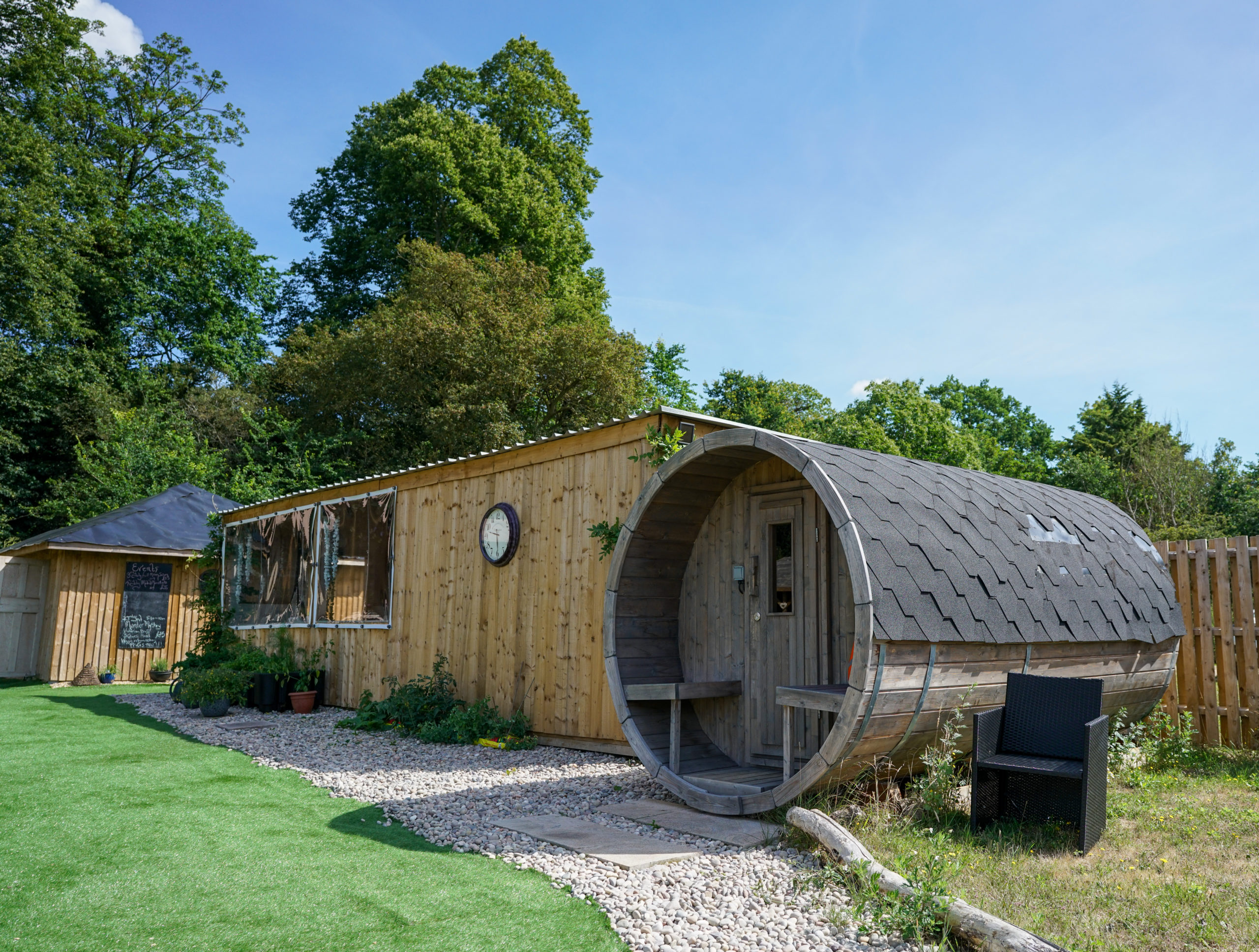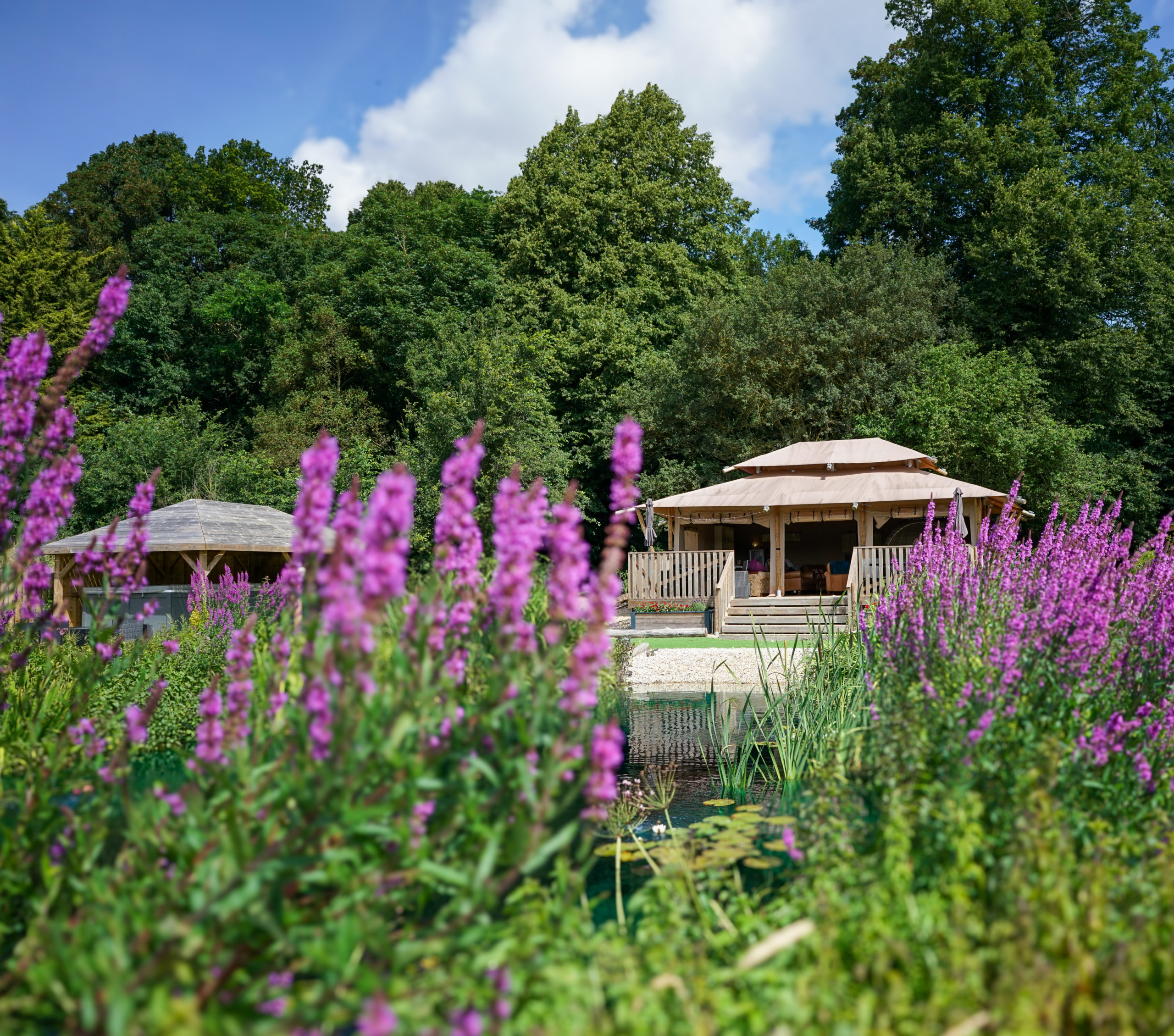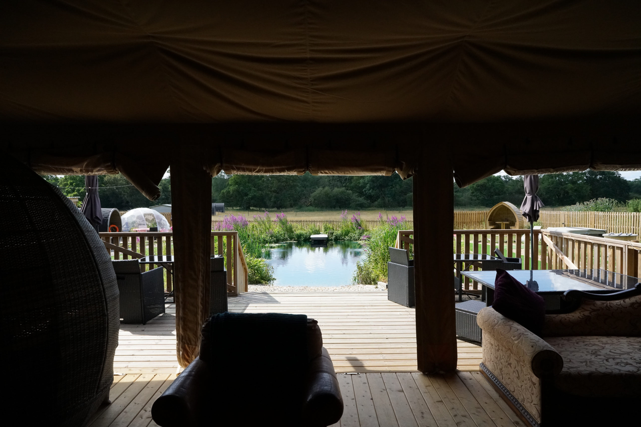 The spa is an outdoor experience, our wellness garden has a natural swimming pool, hot tub, barrel sauna, infrared sauna, cold plunge and relaxation area. The relaxation area is an elegant safari tent with a wood burner, sofas and refreshments.  At the rear of the complex we have outdoor showers, toilets, changing facilities and lockers.
